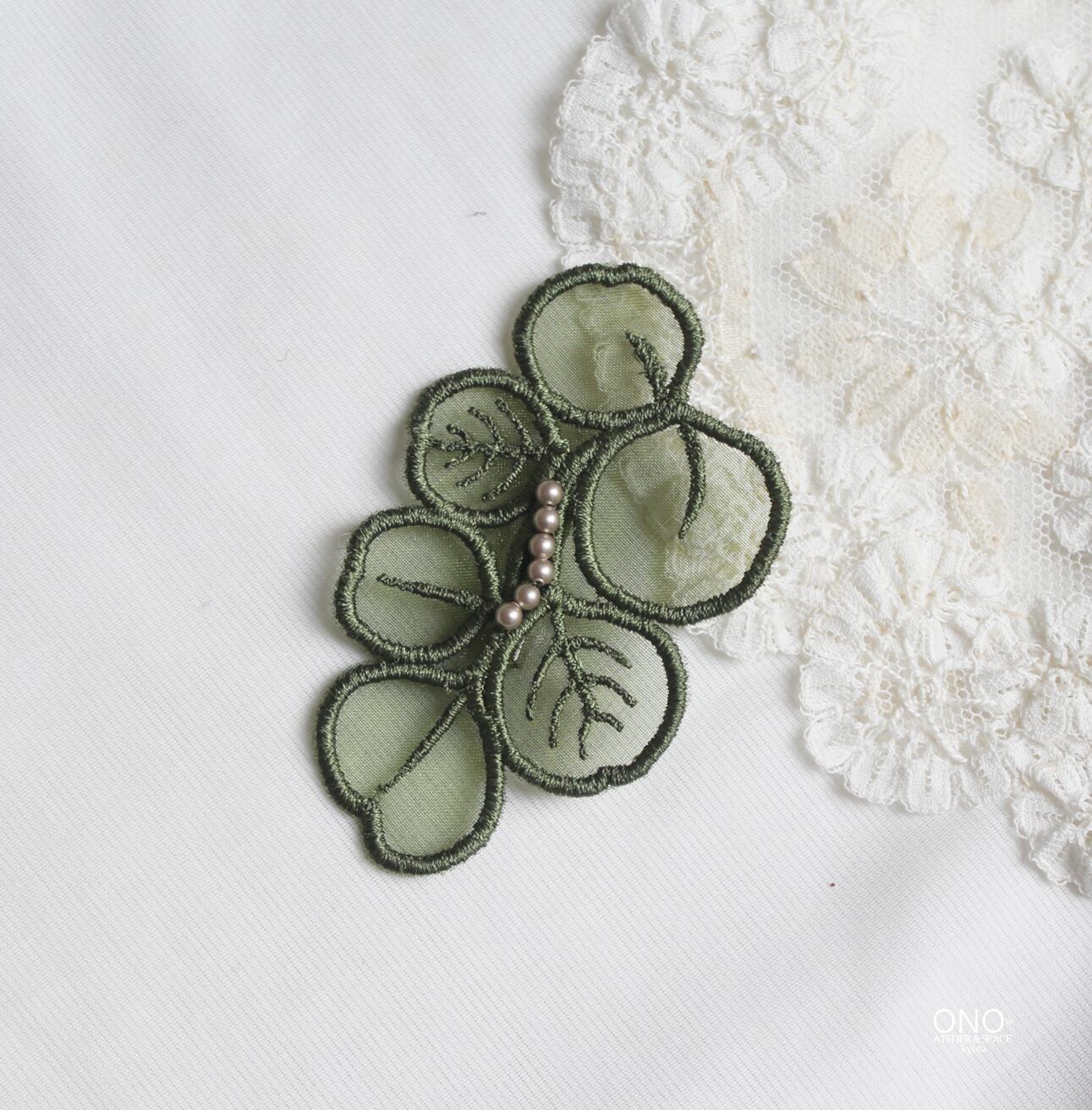 jumelle オーガンジー刺繍ユーカリ ブローチ