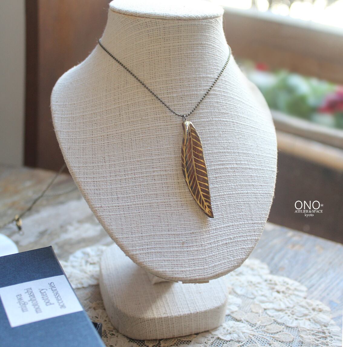 元橋みぎわ 飴釉金彩 葉っぱのネックレス