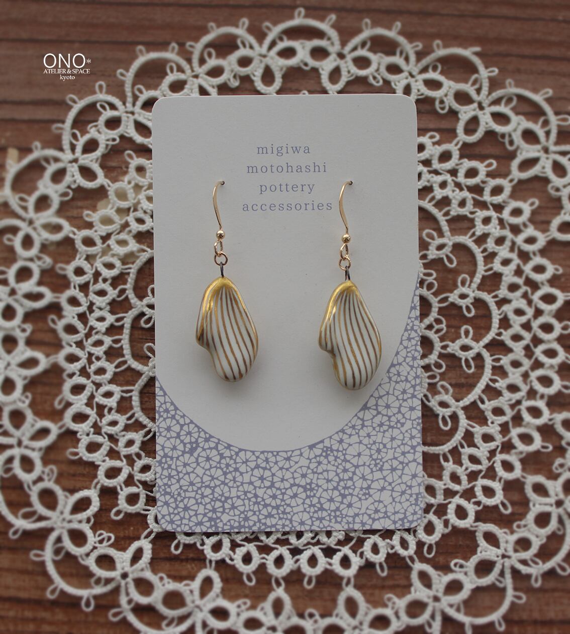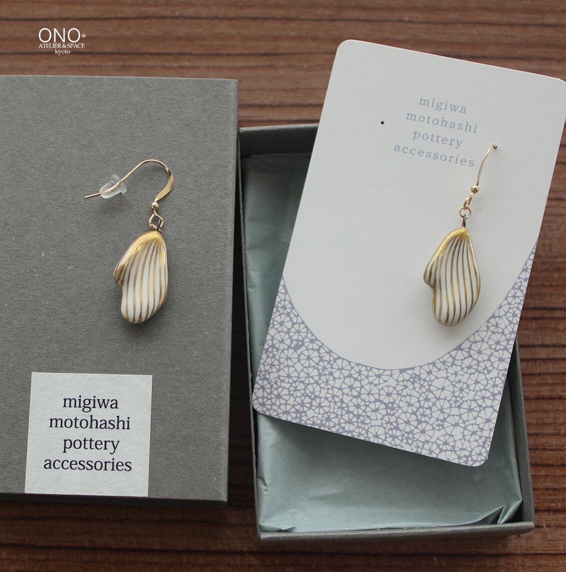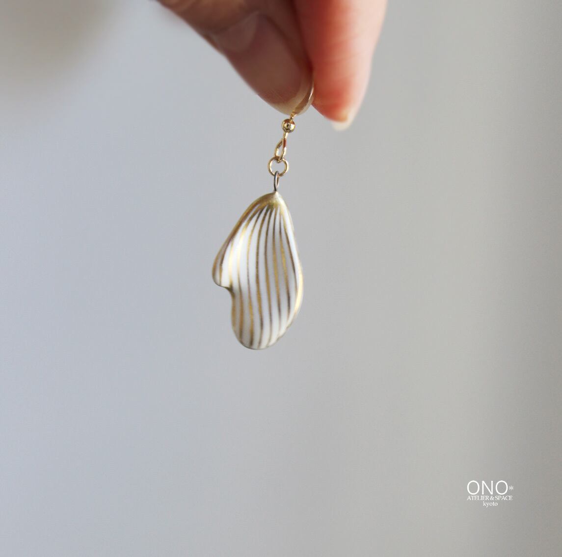 元橋みぎわ 陶ピアス 白金彩 花びら