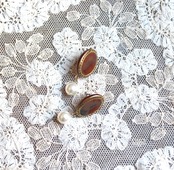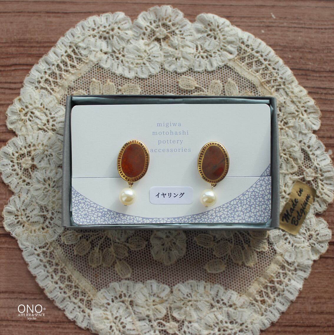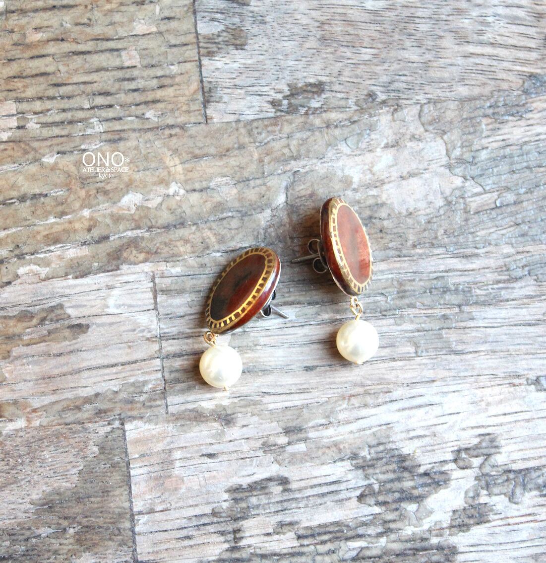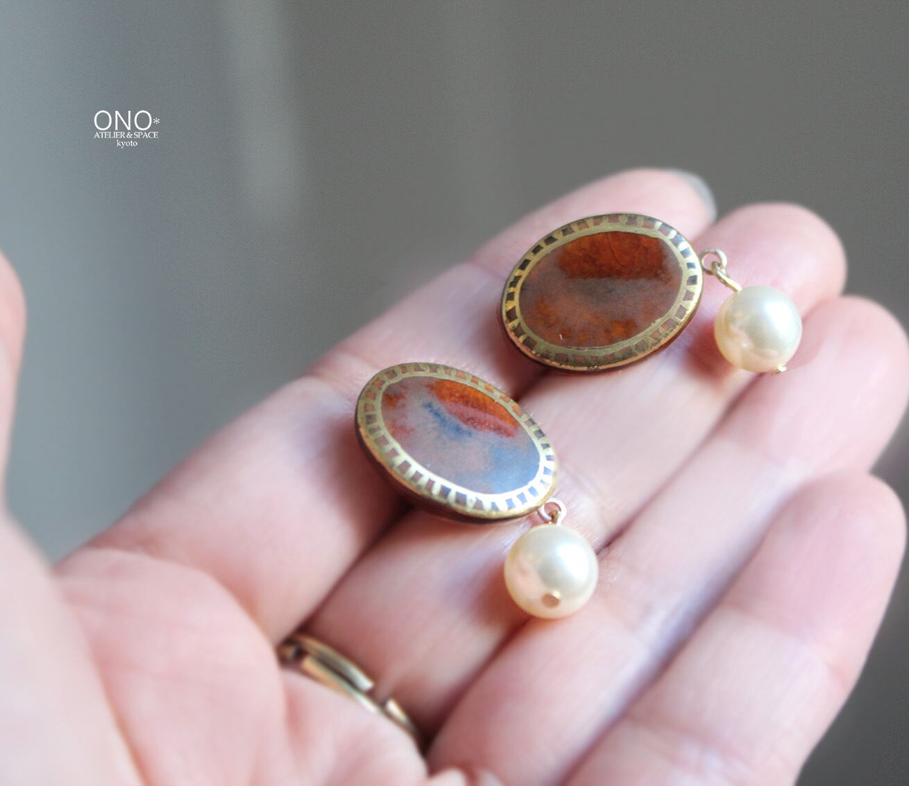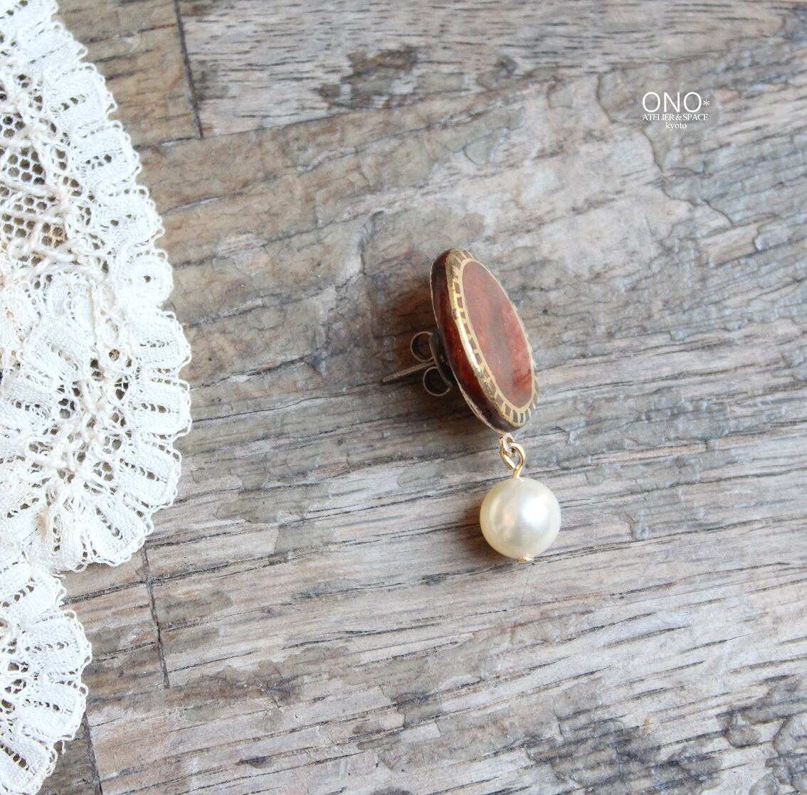 元橋みぎわ 陶イヤリング・ピアス 飴釉 楕円パール
