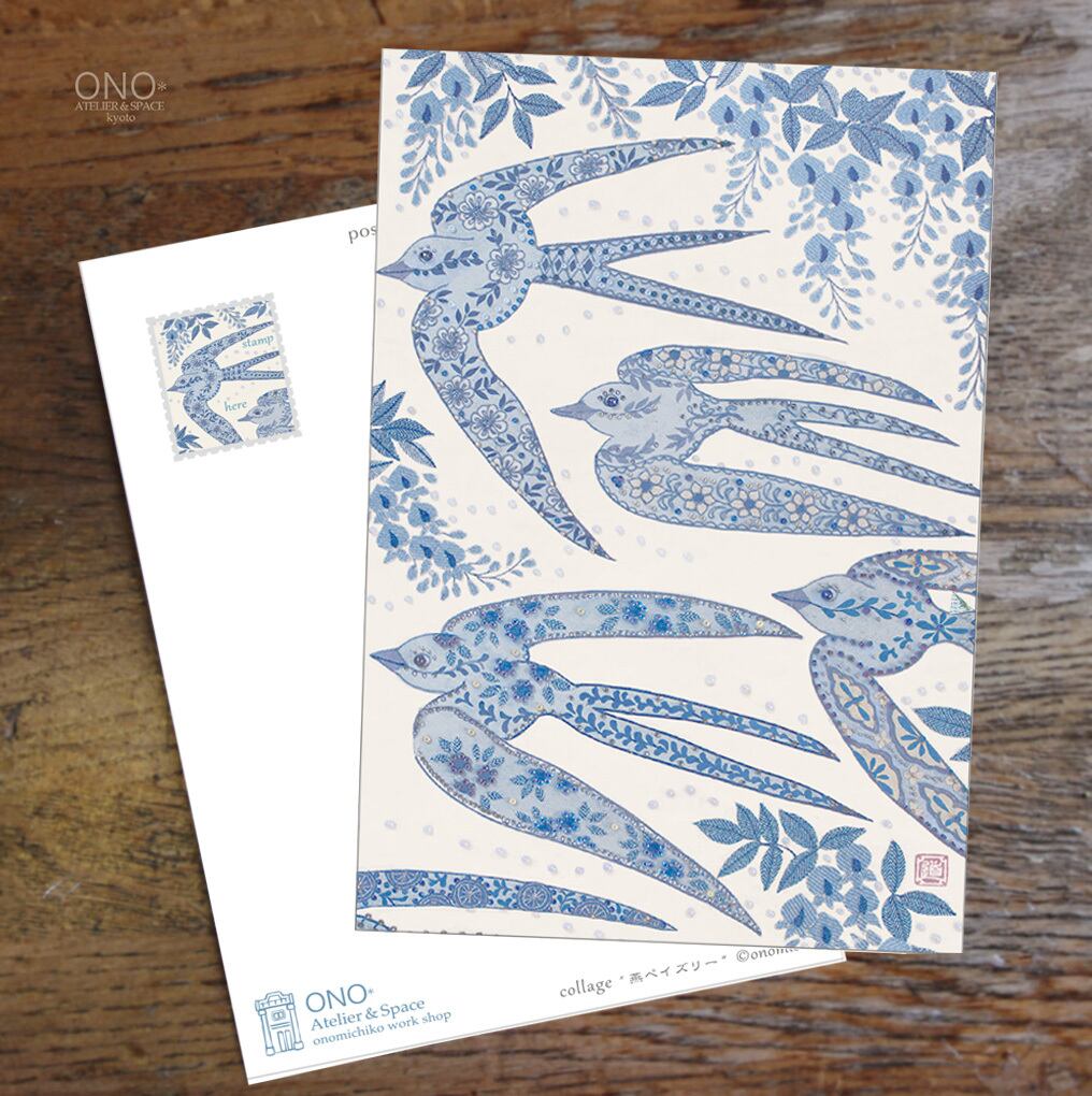 燕のコラージュ作品のポストカードをお得なセットにしました。