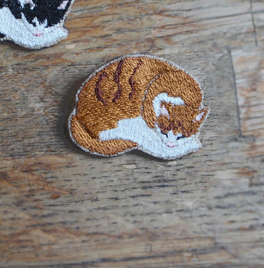 機械刺繍ならではの繊細な縫い目、上品な糸の輝きが本物のネコを彷彿とさせます。