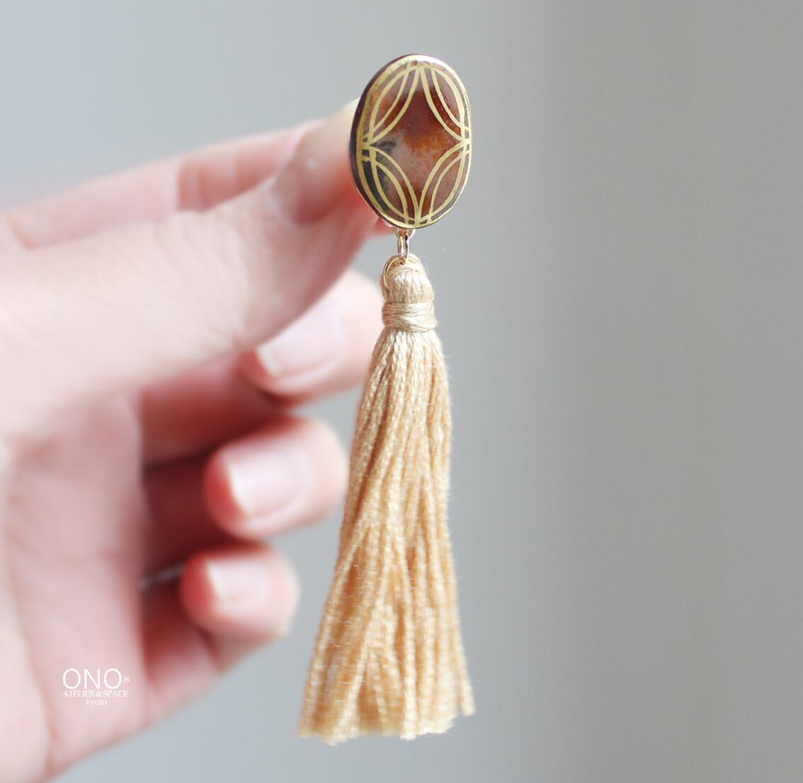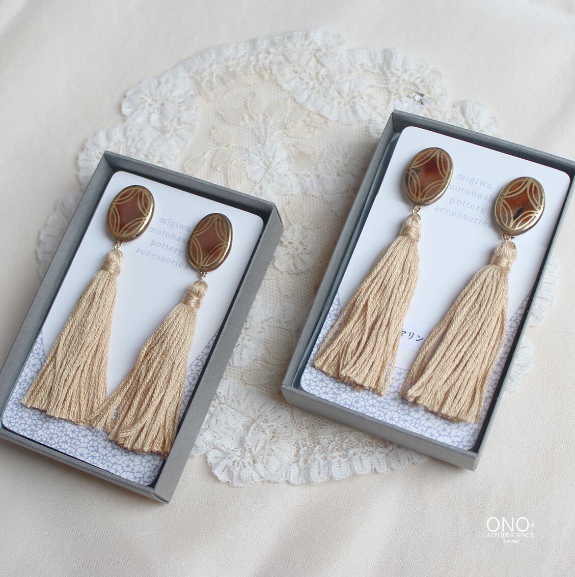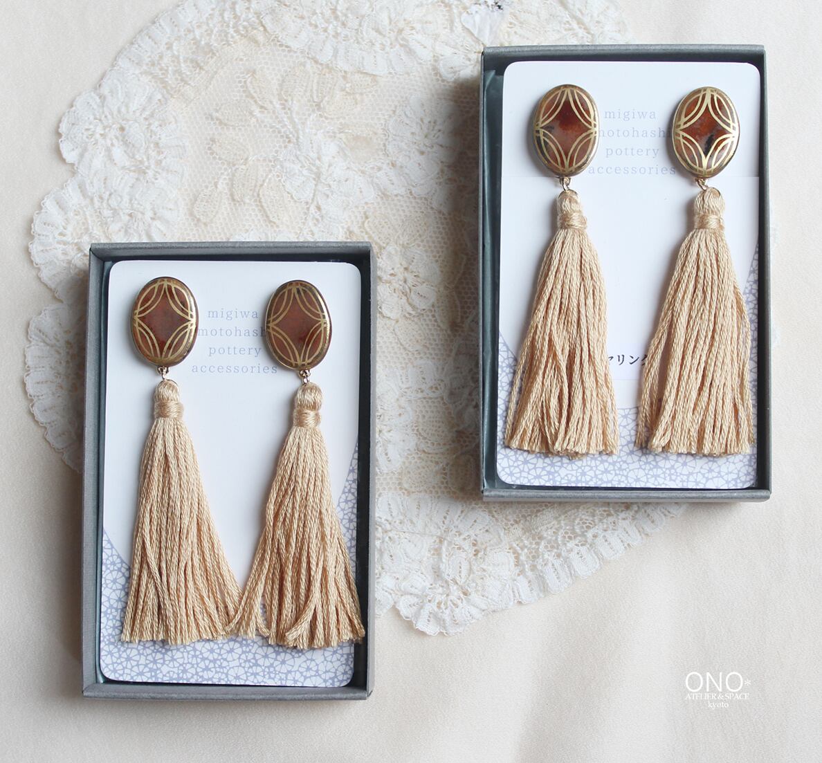 元橋 みぎわ 陶 イヤリング 飴釉金彩タッセル
