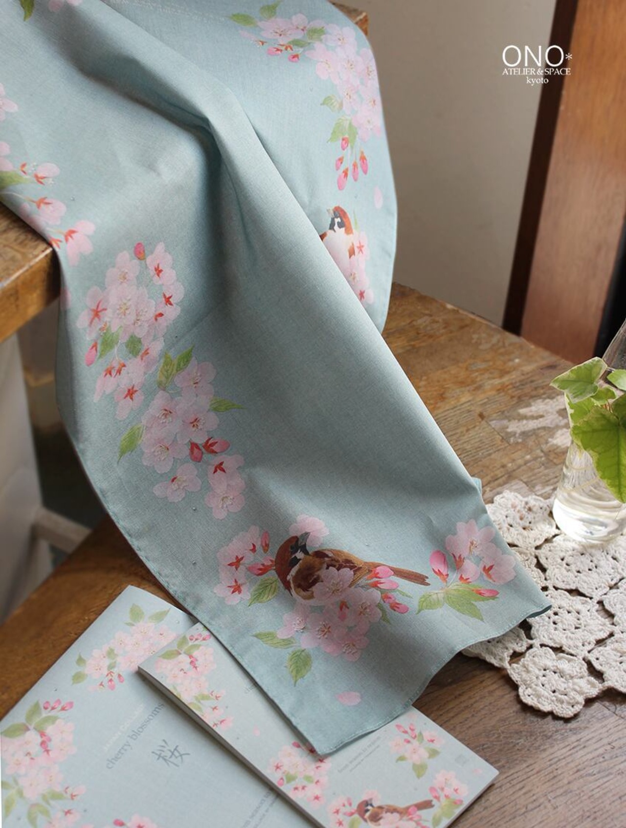便箋や一筆箋、2019年大判カレンダーの表紙絵 2023年「草花添装」4月絵としても使われた作品をONO*オリジナルのハンカチーフにしました。