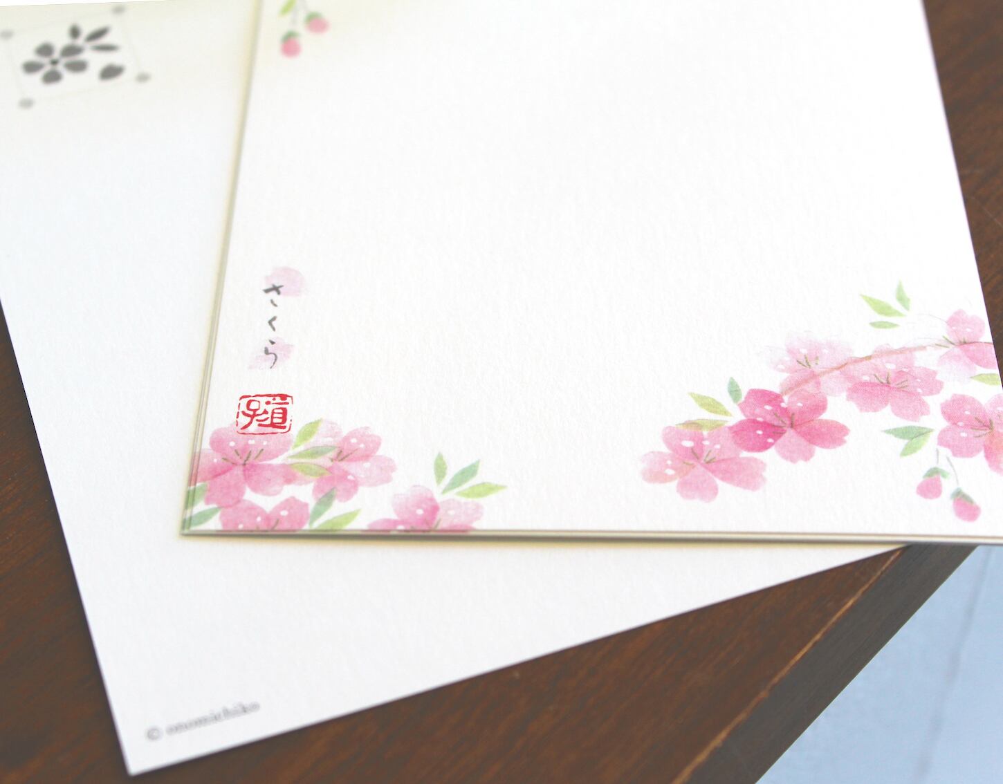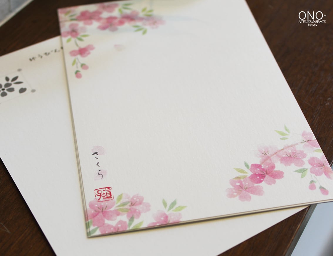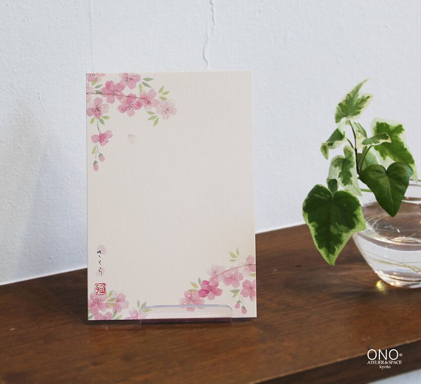 染め和紙のはりえと着彩で表現した 桜のはがき。