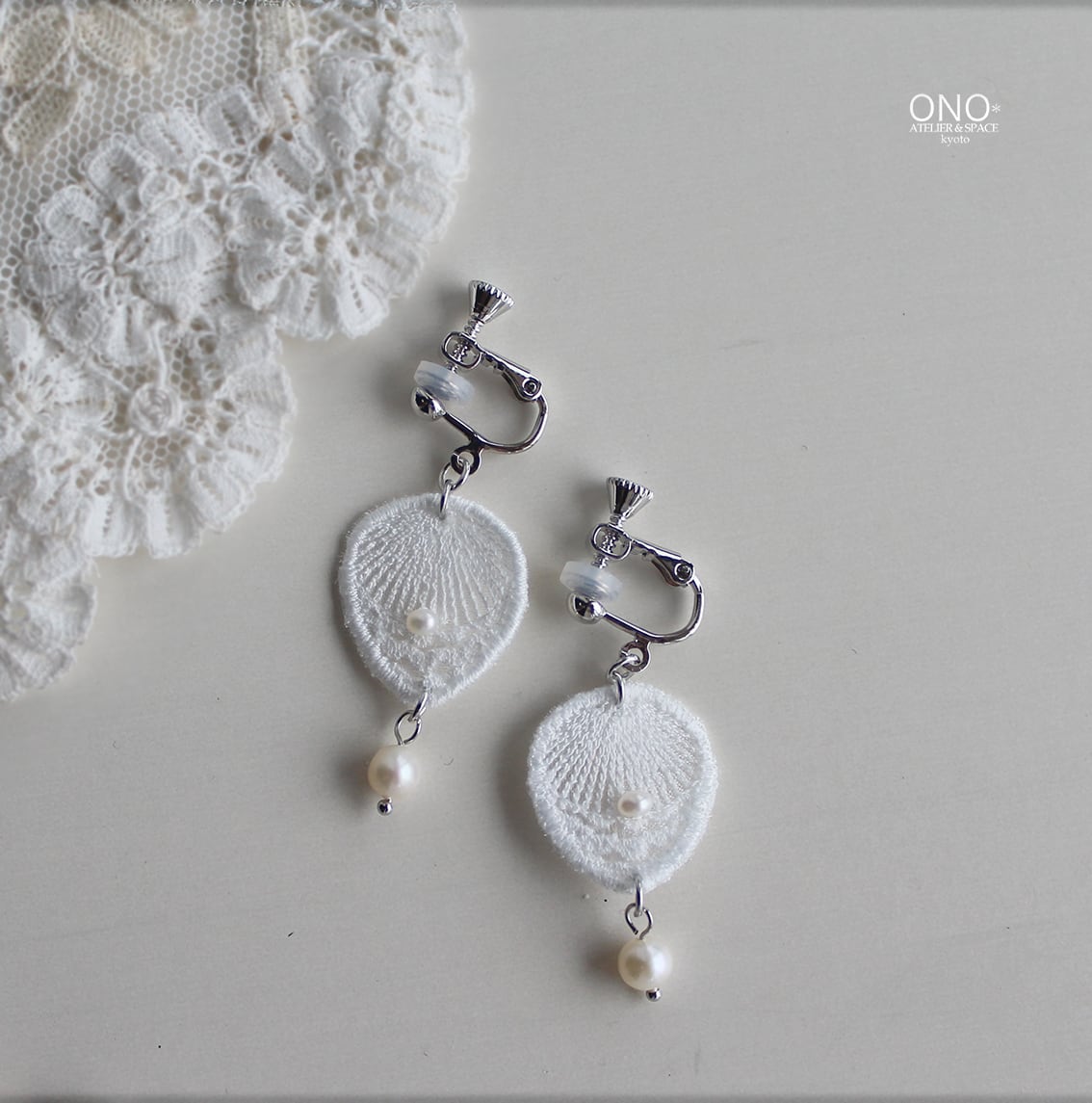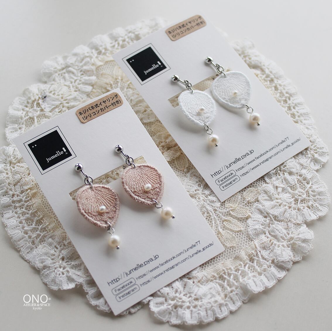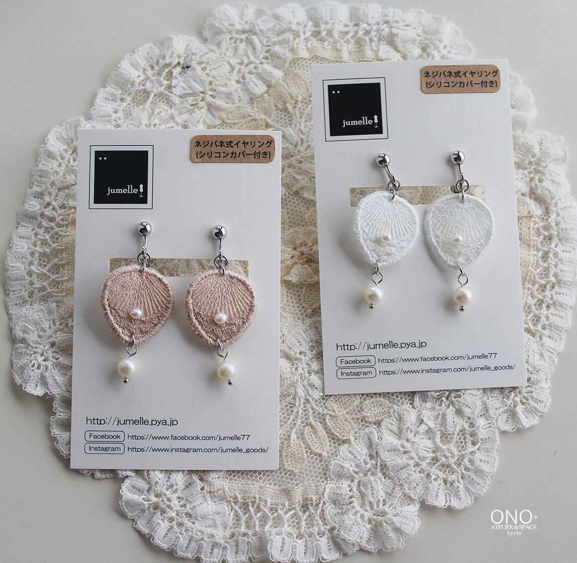 jumelle オーガンジー刺繍淡水パールイヤリング・ピアス ホワイト