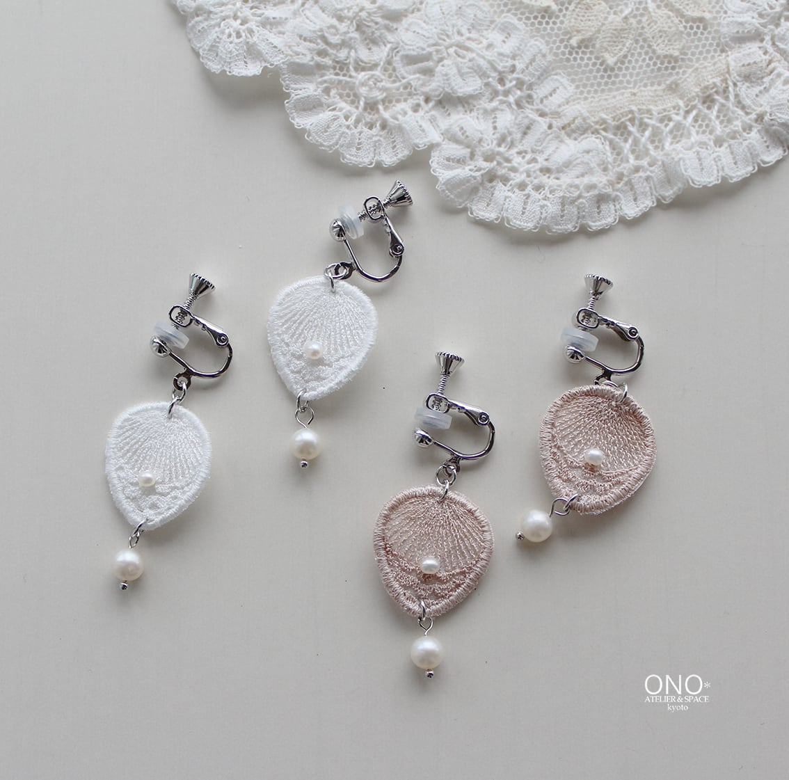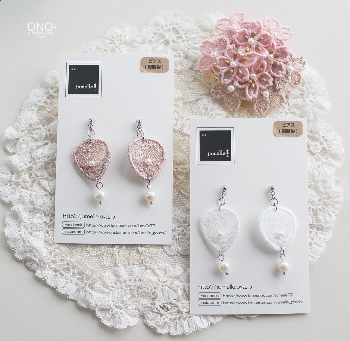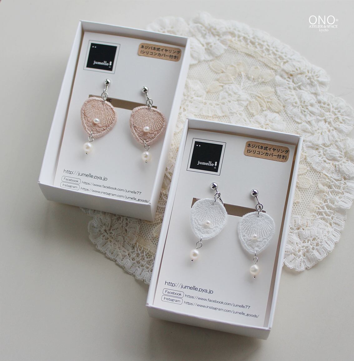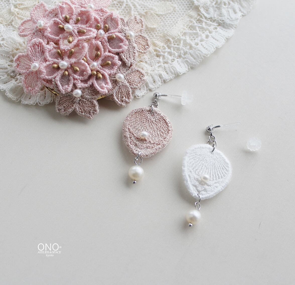 jumelle オーガンジー刺繍淡水パールイヤリング・ピアス ホワイト