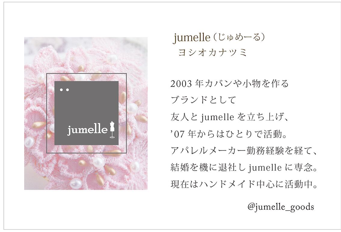 カバンやコモノを中心としたハンドメイド雑貨のデザイン/制作を手掛ける『jumelle』。