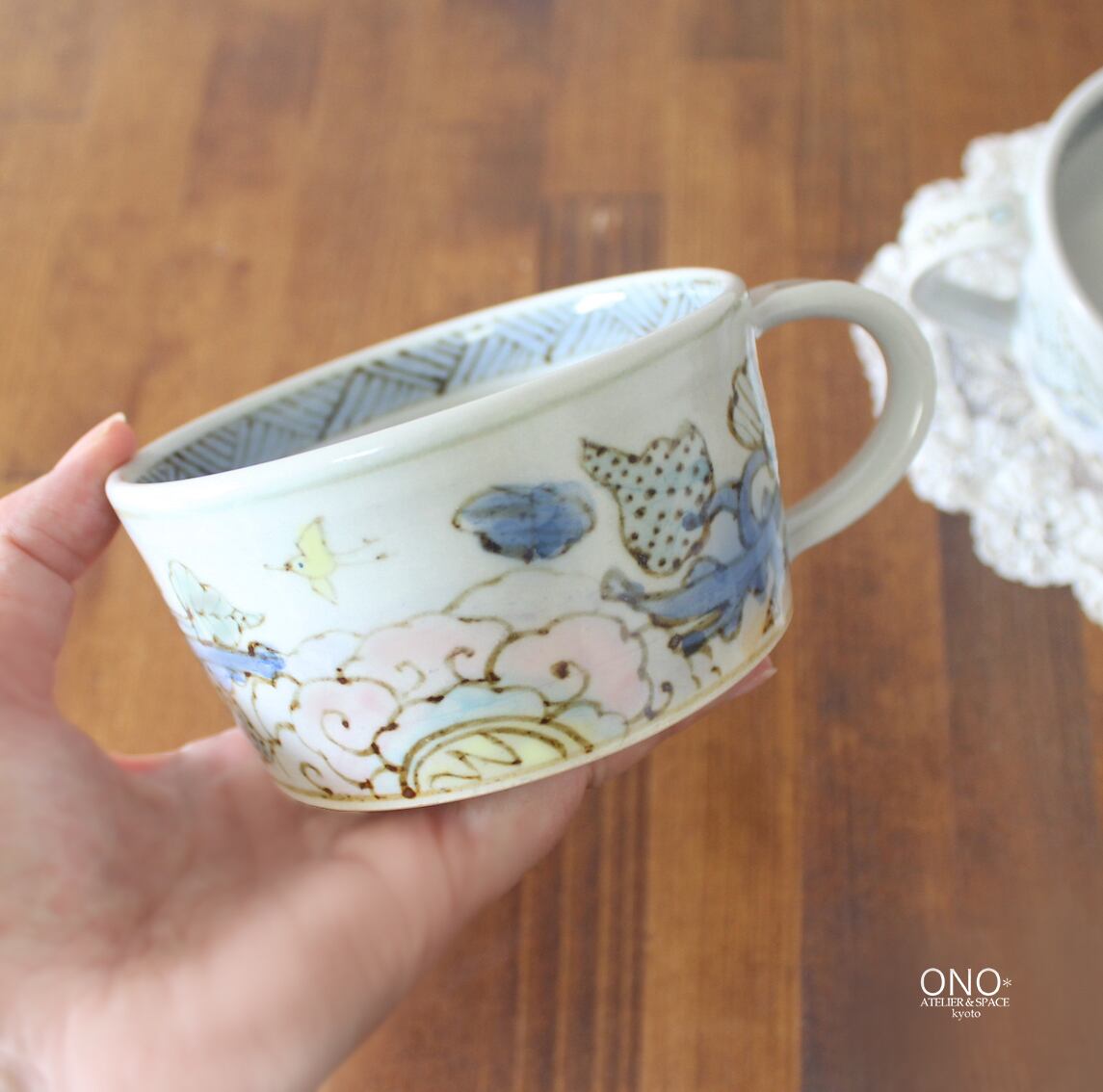 絵付けが魅力的 京都で活動する陶芸家 田頭由起さんのスープカップ。
