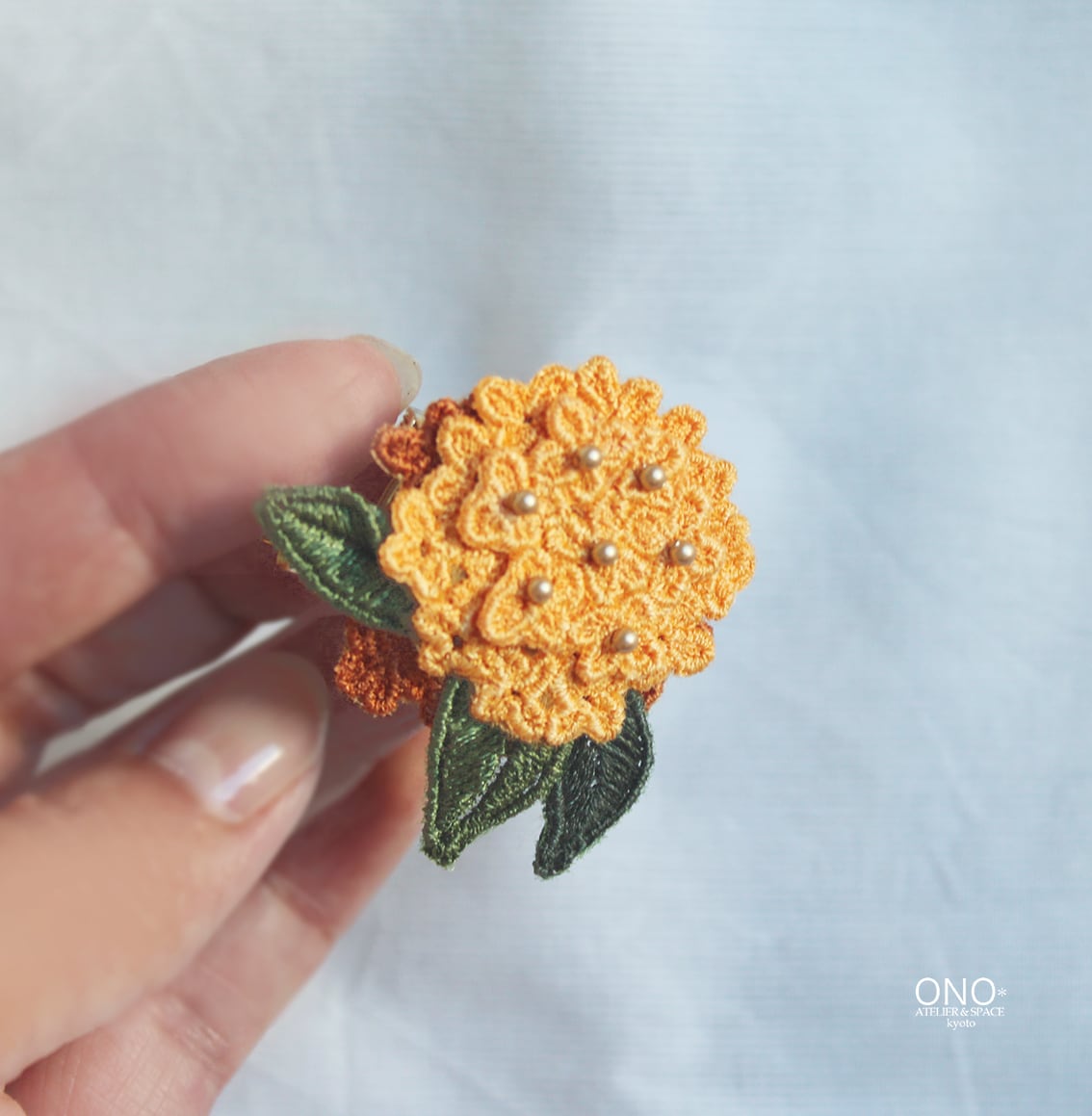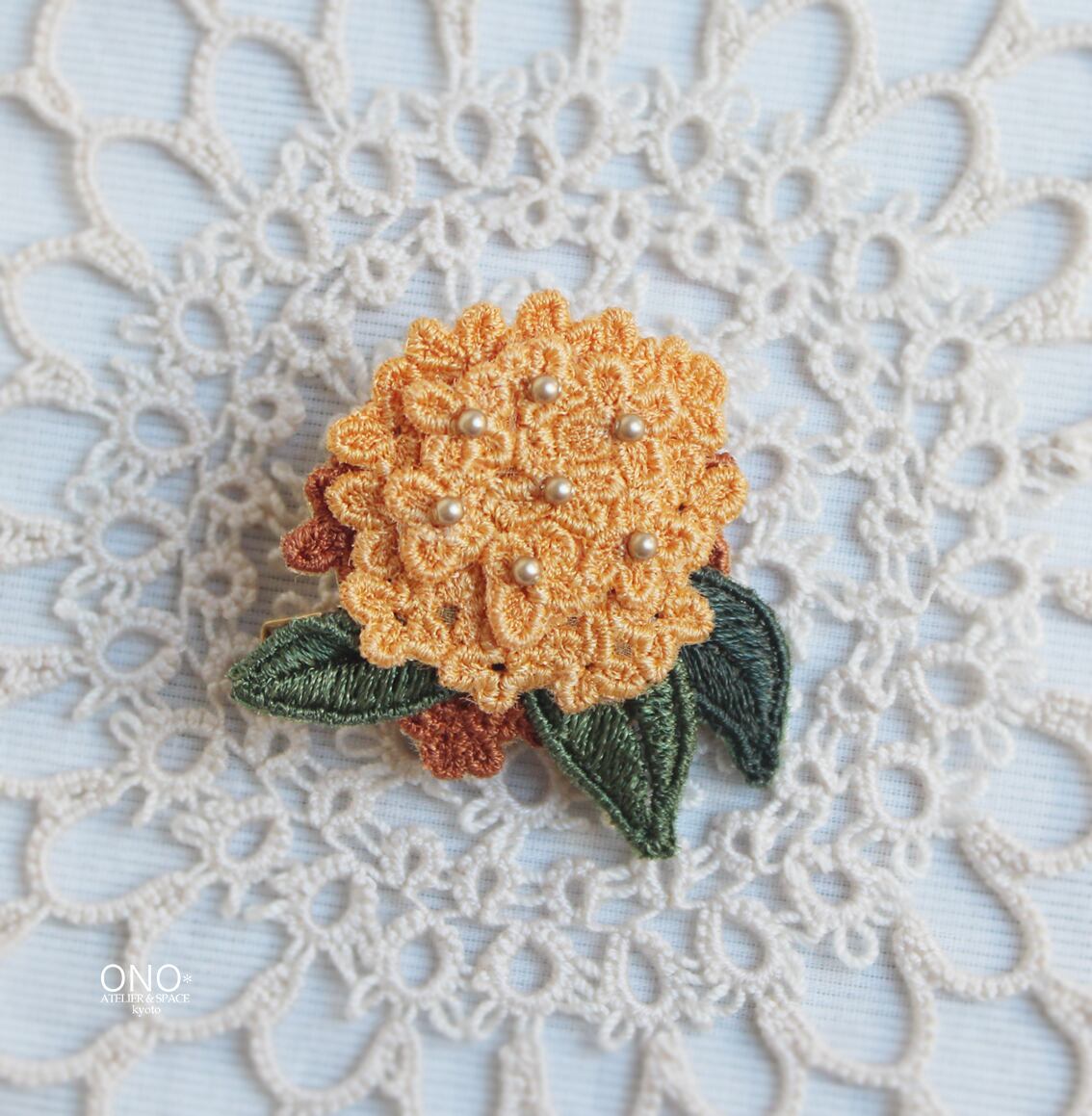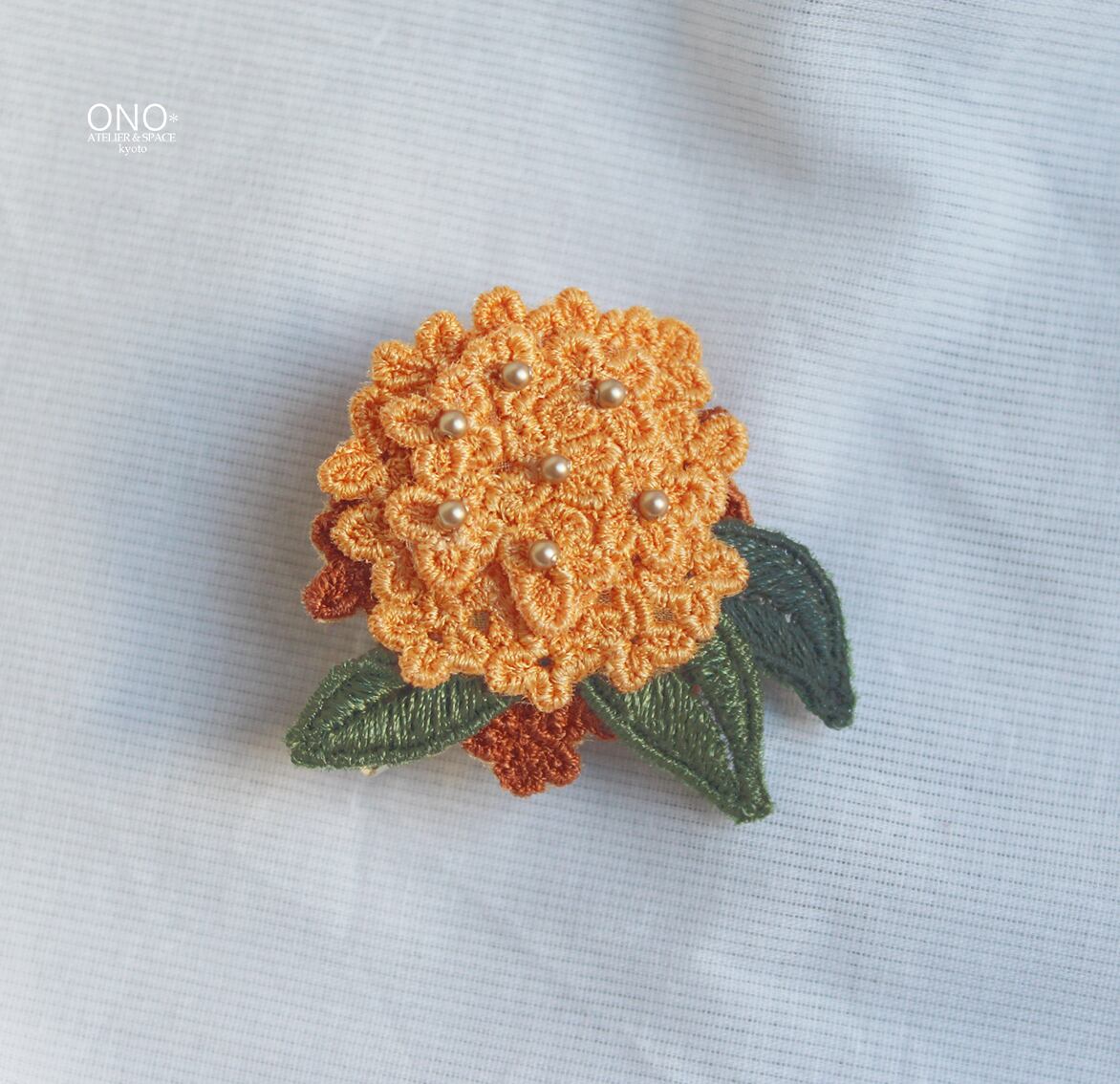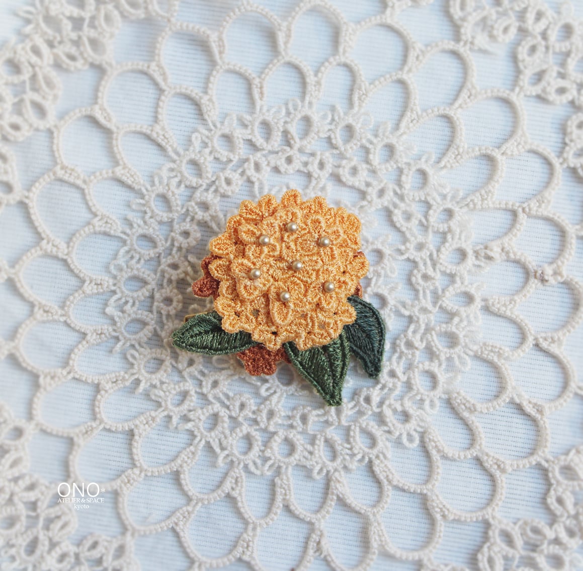 手のひらにすっぽり収まるサイズながら重なりあった刺繍の立体感で上品な存在感があります