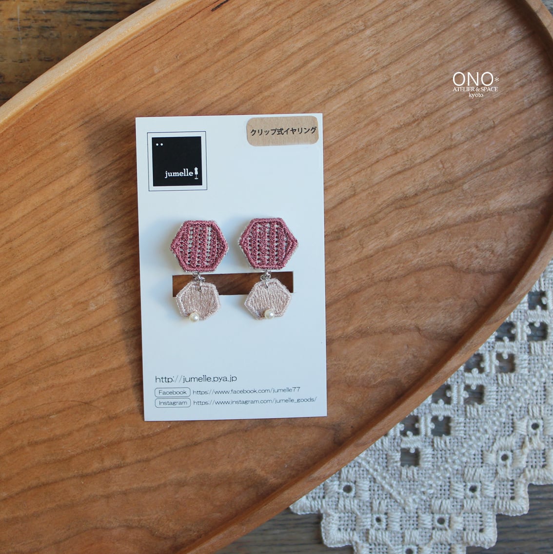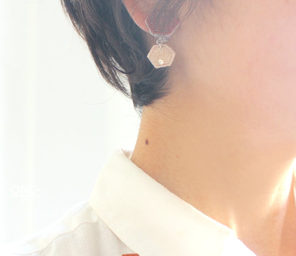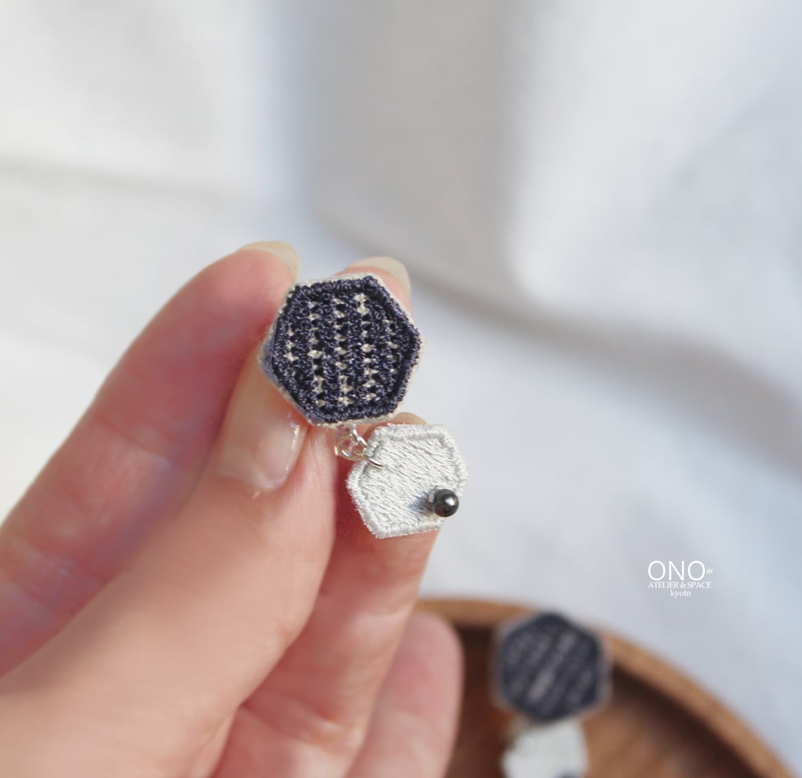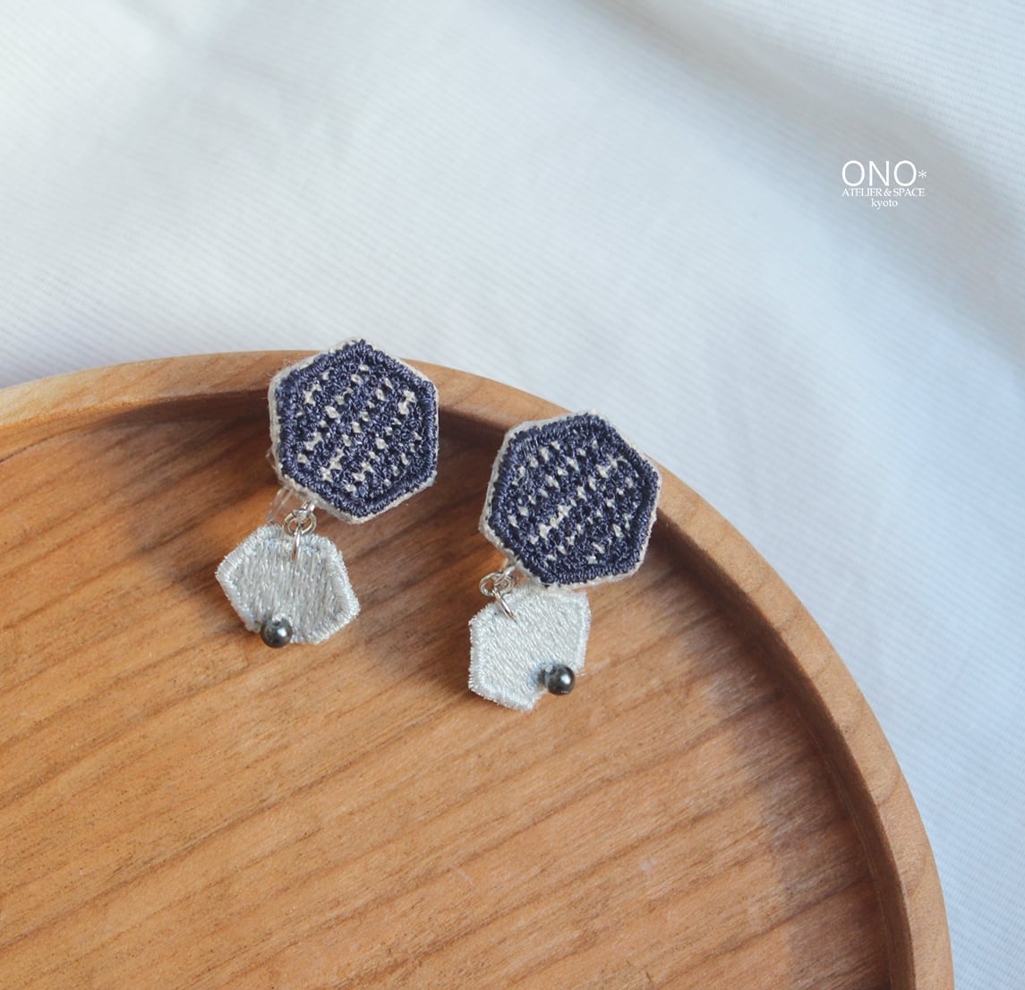 jumelle ヘキサゴンゆらゆら刺繍イヤリング
