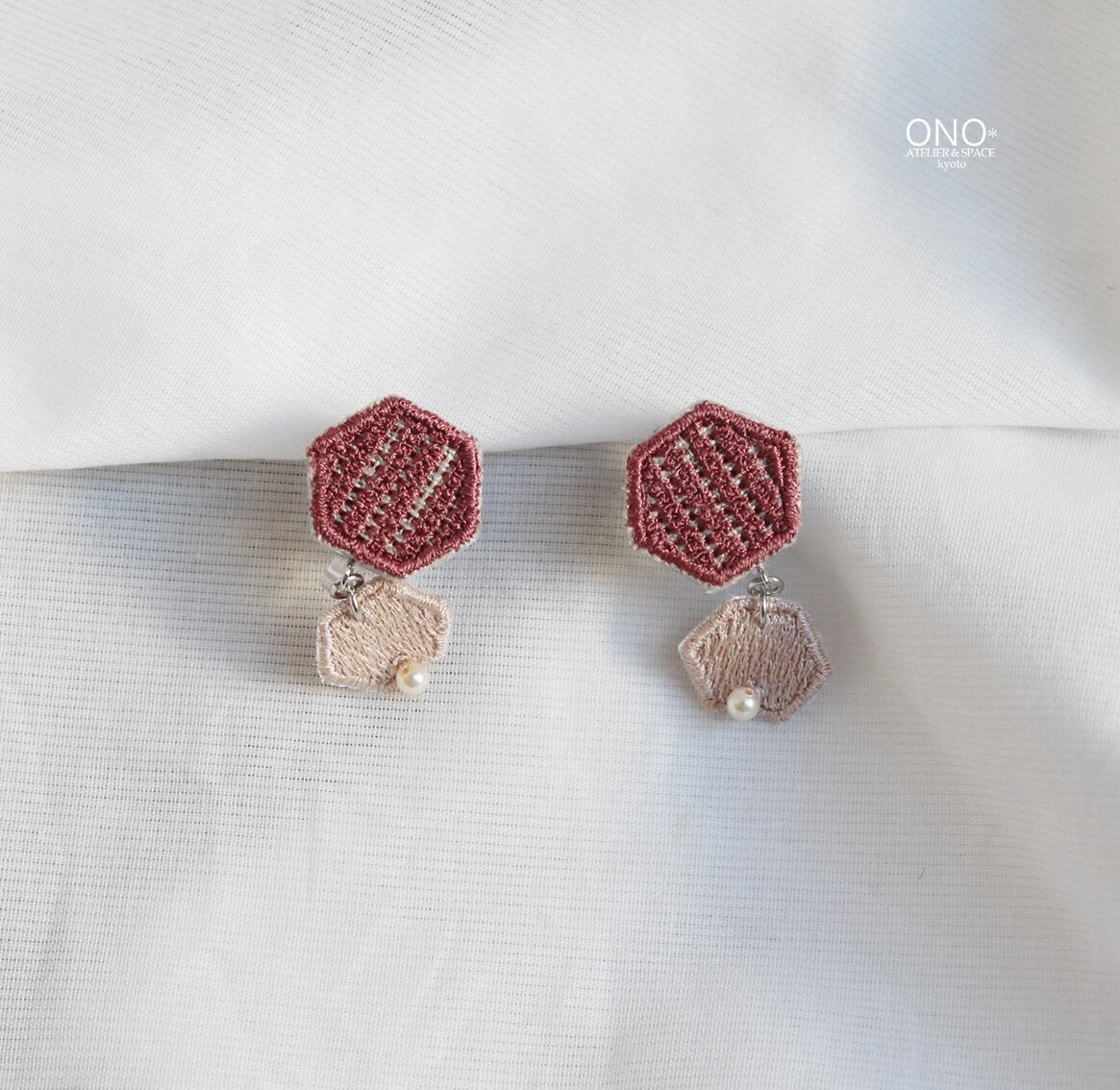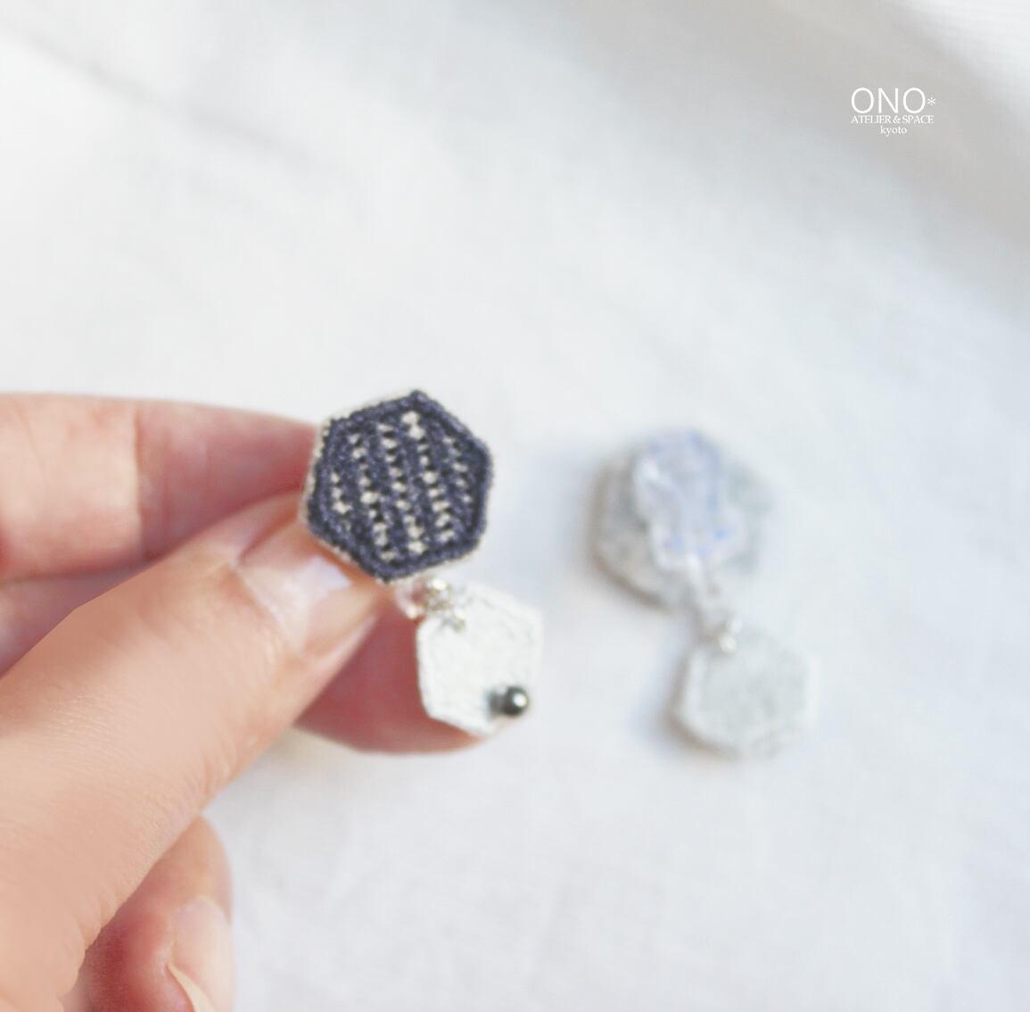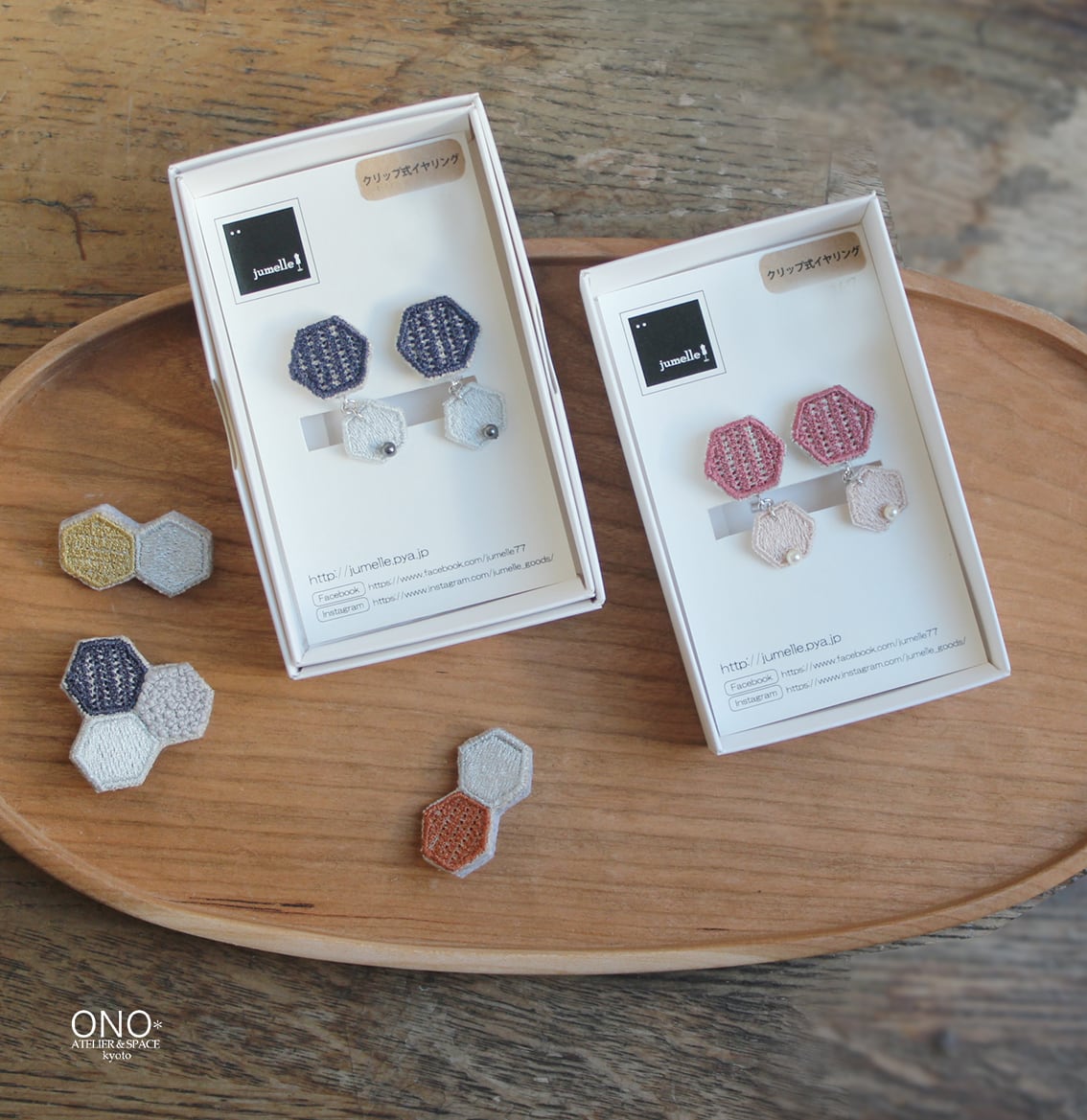 jumelle ヘキサゴンゆらゆら刺繍イヤリング