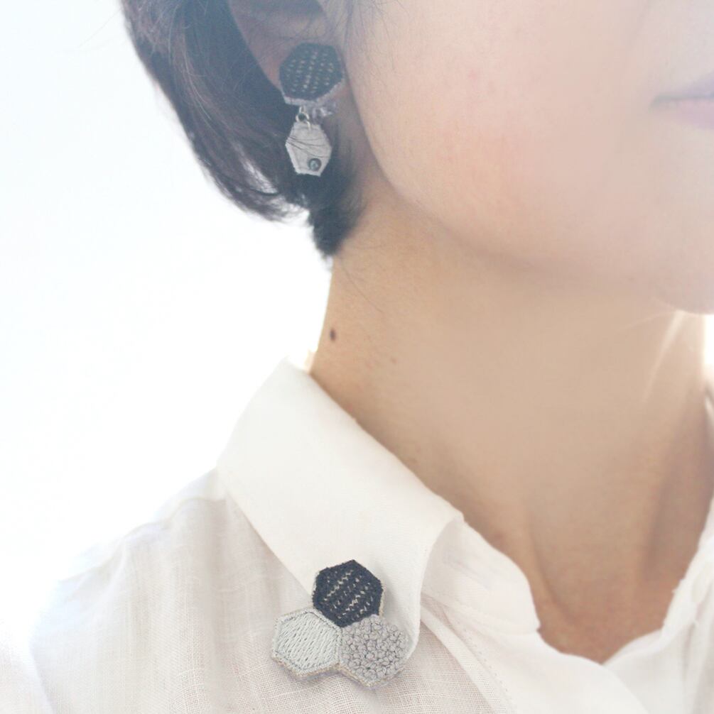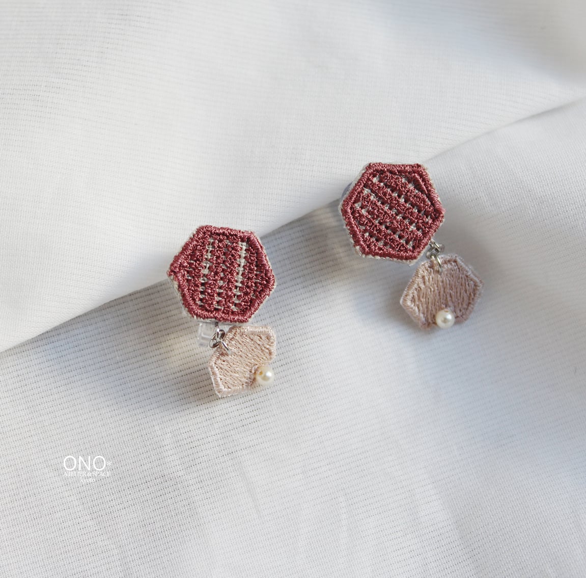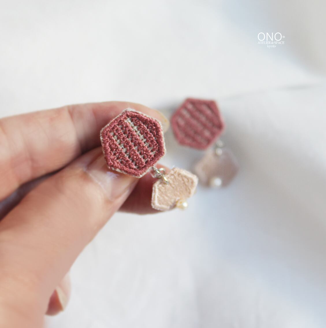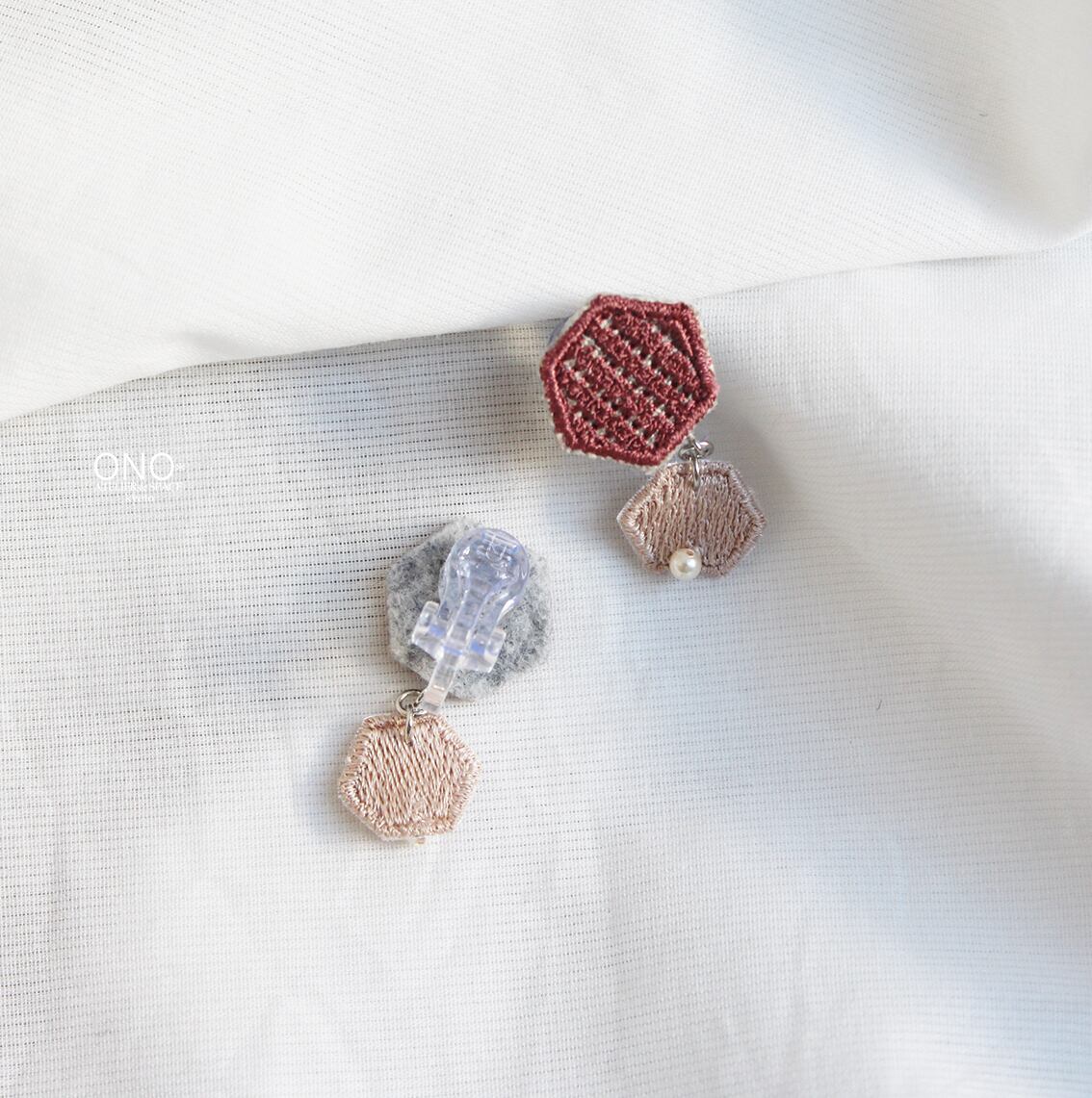 jumelle ヘキサゴンゆらゆら刺繍イヤリング