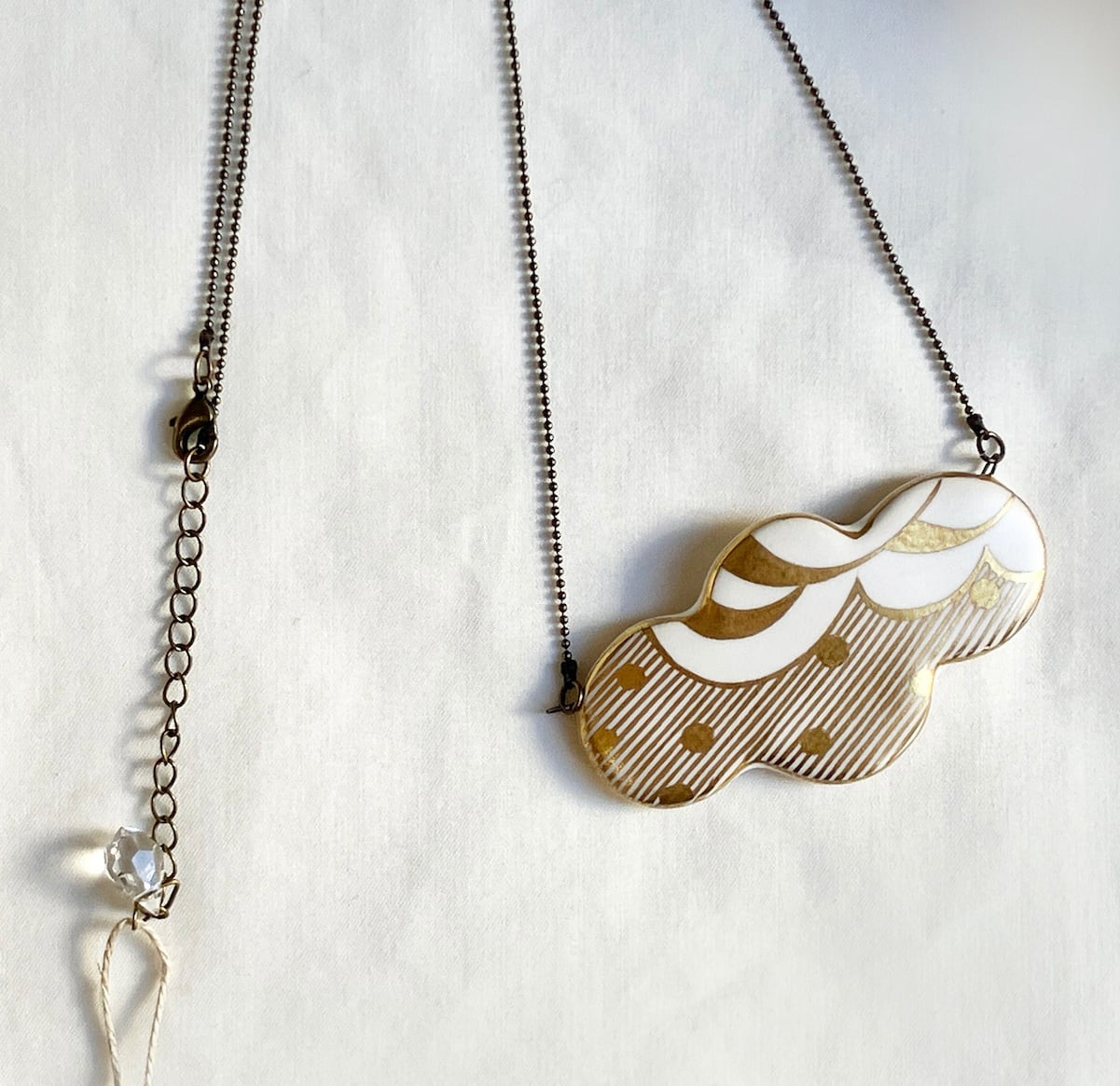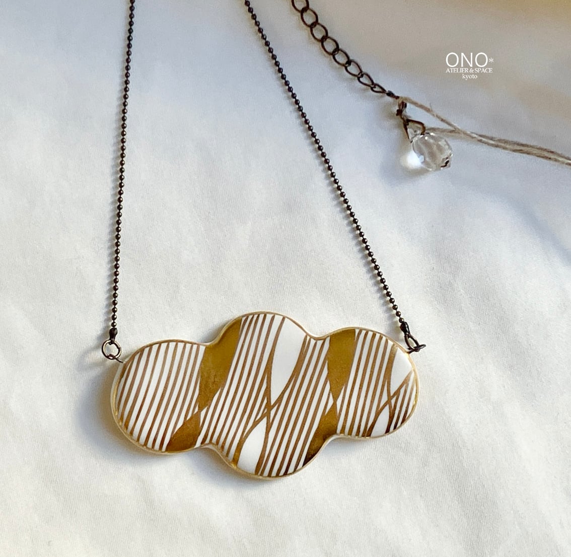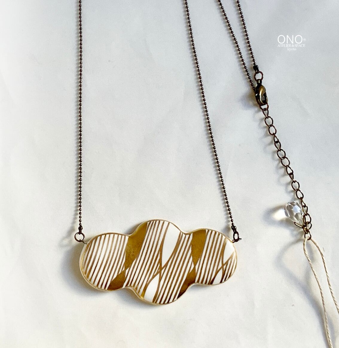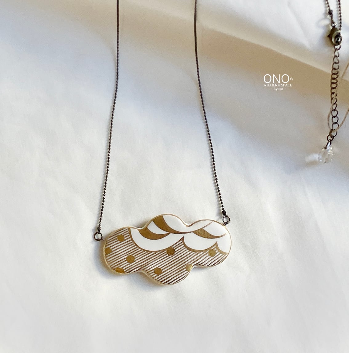 雲をイメージした大きめのトップ。小さなアンティークビーズの鎖が繊細な魅力。